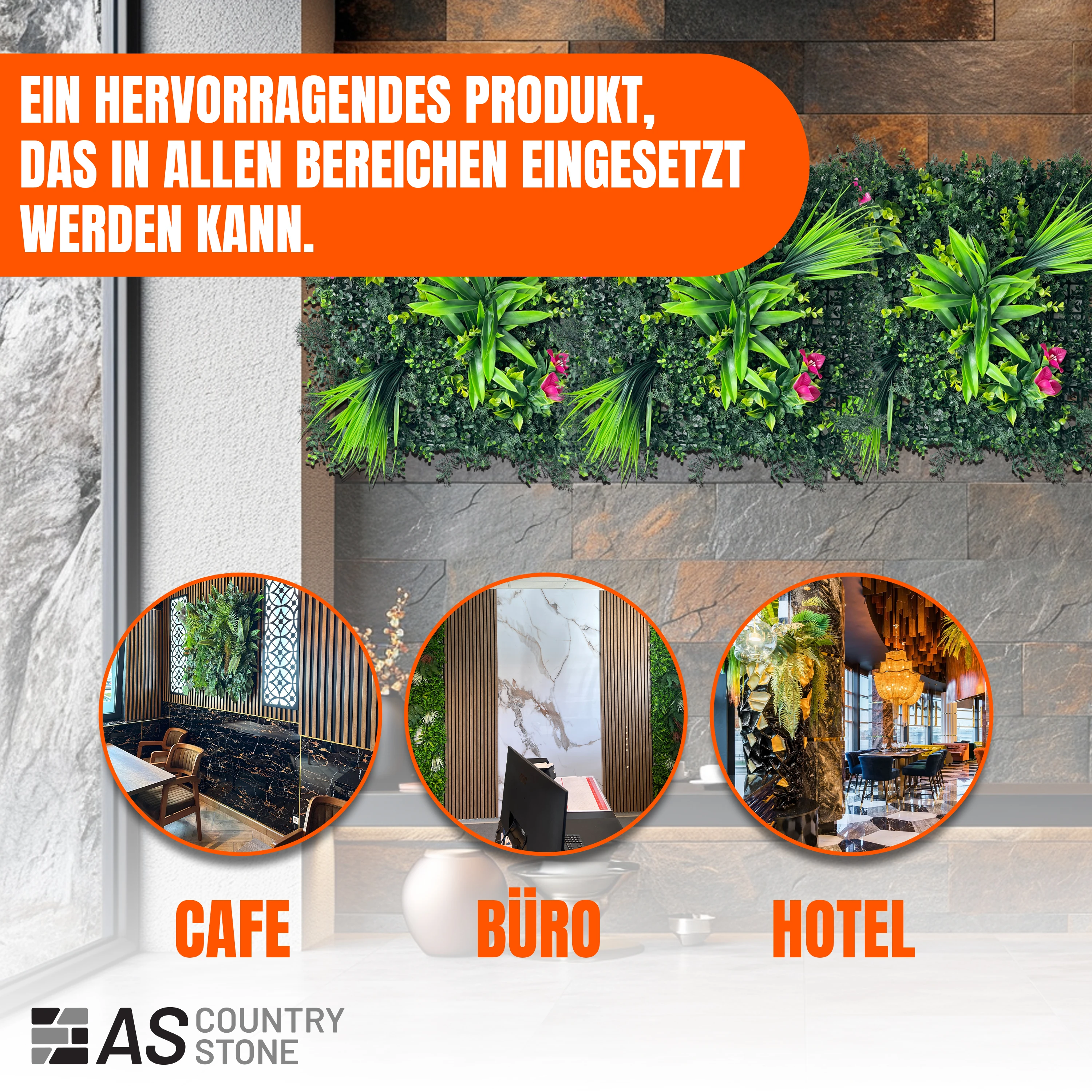 Verwandeln Sie Ihre Räume in eine erfrischende Oase mit den Kunsthecken-Paneele "Oase" von AS Country Stone.