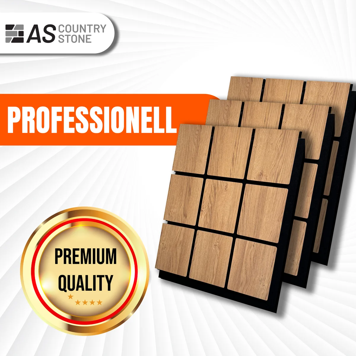 Ob im Wohnzimmer, im Büro oder in der Bibliothek, das Quadratische Akustik-Paneel "Teak" verbessert die Raumakustik, während es gleichzeitig eine stilvolle Wandverzierung darstellt. Vertrauen Sie auf die Expertise von AS Country Stone und verwandeln Sie Ihre Wände in ein Kunstwerk, das nicht nur optisch ansprechend ist, sondern auch akustisch überzeugt.