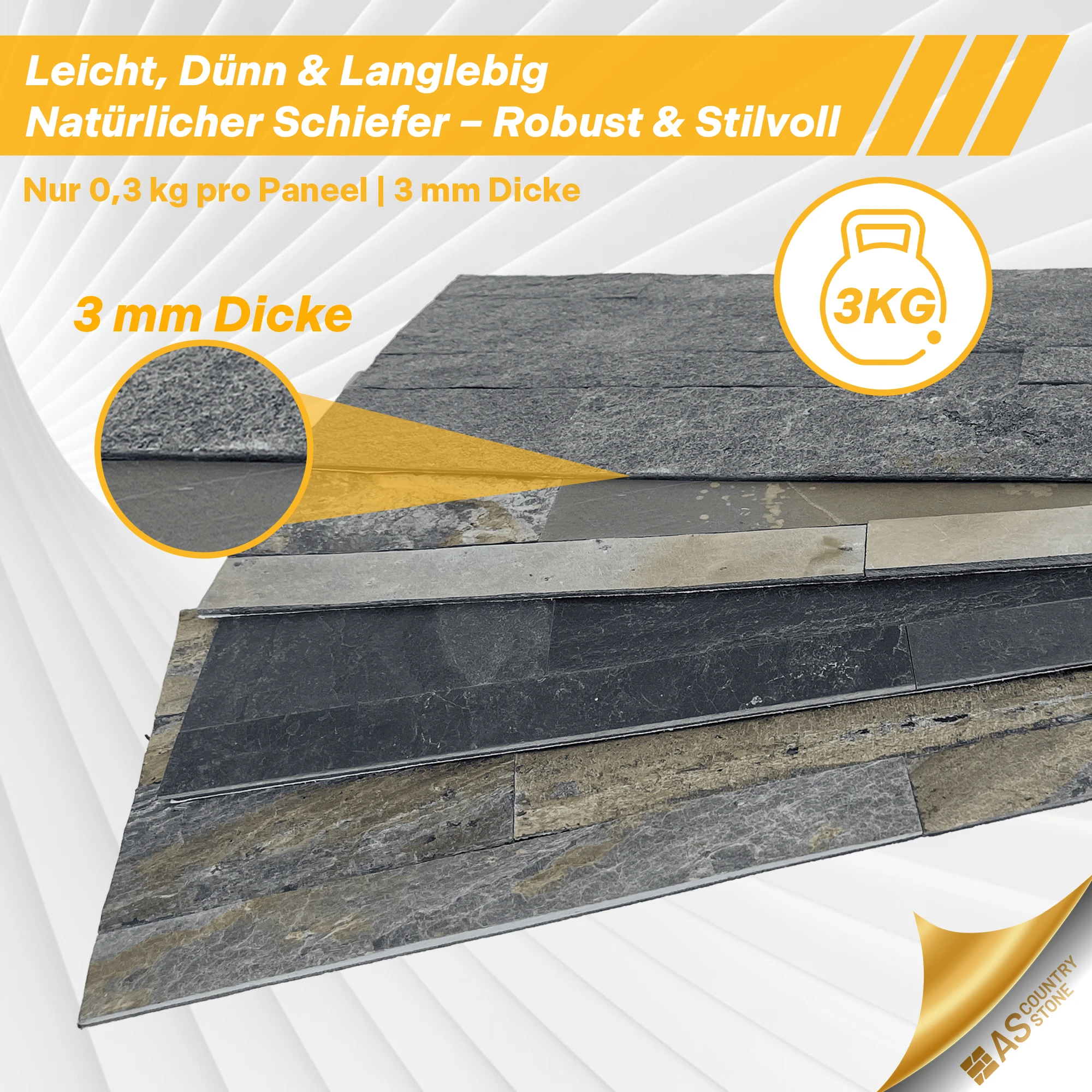 - Kostengünstiger und leichter als eine Schiefervertäfelung