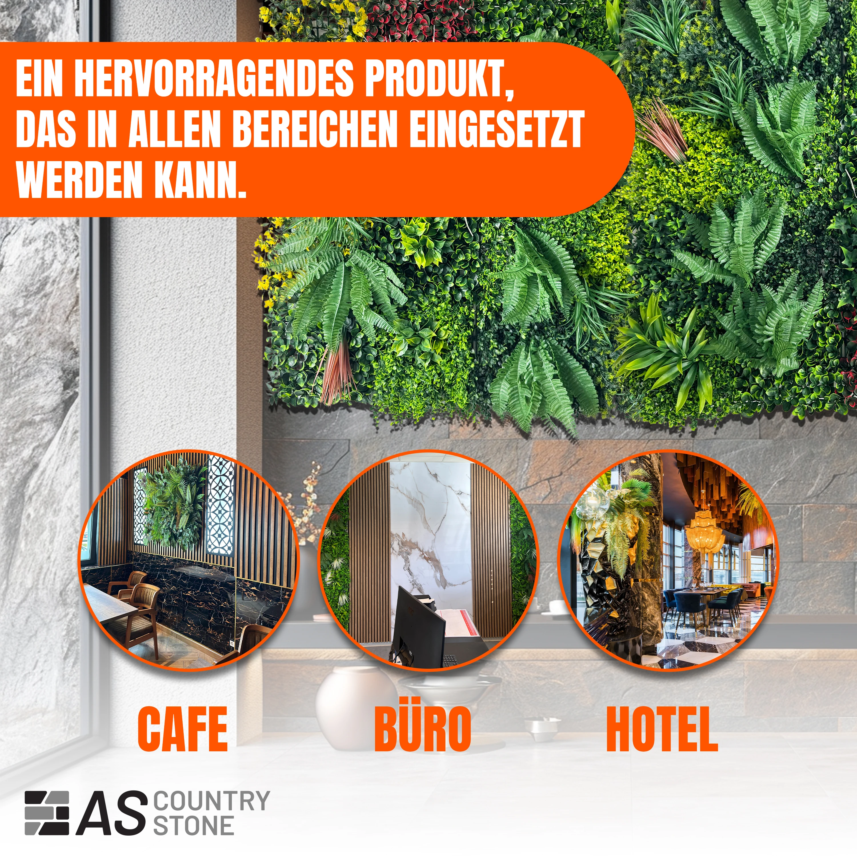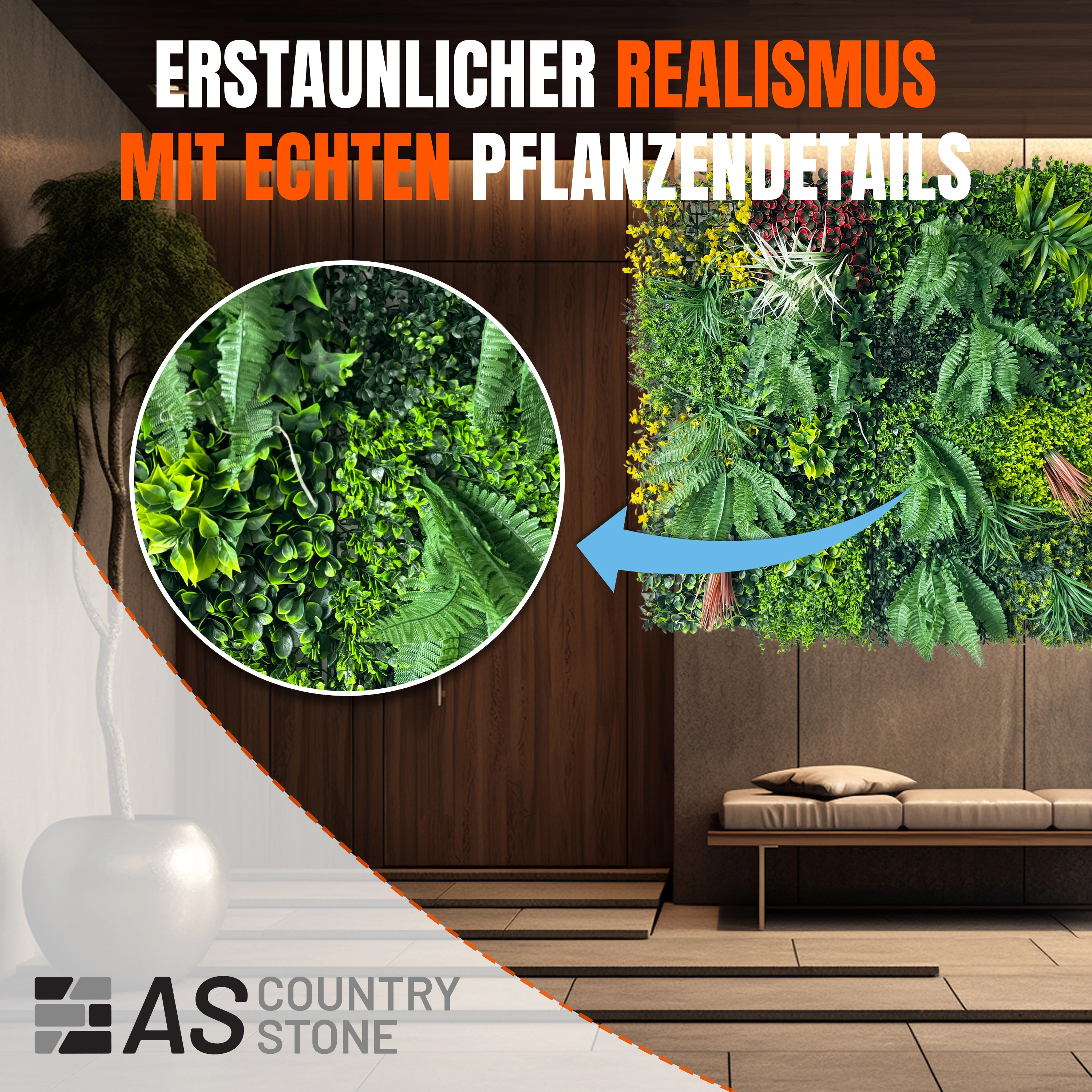 Verleihen Sie Ihrem Zuhause oder Büro mit der Kunsthecke "Blumenwiese" von AS Country Stone einen Hauch von Natur, ohne sich um die Pflege echter Pflanzen kümmern zu müssen.