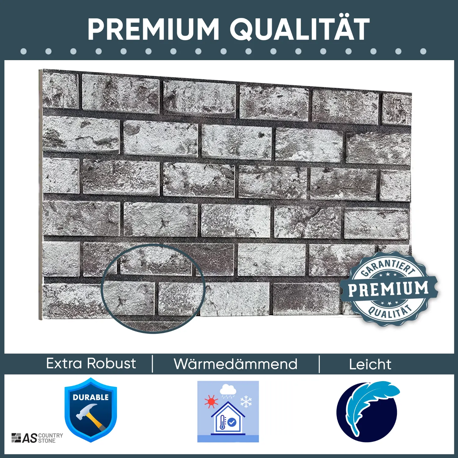 Mit unseren Styroporpaneelen von AS Country Stone erhalten Sie Wandpaneele in einer wunderschönen modernen und ebenmäßigen Klinker- bzw. Steinoptik. Die Steine haben eine gerade geschnittene rechteckige Form und sehen dem modernen Klinker an neu gebauten Häusern täuschend ähnlich. Das angenehm feste Material aus Styropor mit seiner harten Oberfläche bietet Ihnen eine Steinwand, die nicht nur nach Stein aussieht, sondern sich auch beinahe genauso anfühlt wie echter Stein. Nutzen Sie gerne auch unseren Musterversand, um sich vor dem Kauf einen ersten Eindruck von diesem Produkt verschaffen zu können. Unsere Styroporpaneele können sowohl im Innen- als auch im Außenbereich verwendet werden.